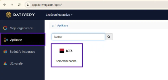 Otevřeme Dativery a v aplikacích vyhledáme a připojíme ABRA Flexi/FlexiBee a zvolenou Banku.