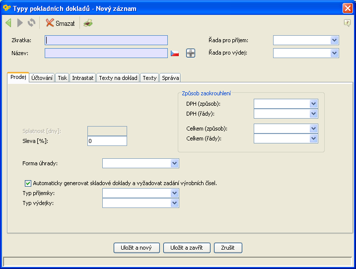 - Pokud budete tvořit nové položky v adresáři nebo nové doklady pomocí tlačítka